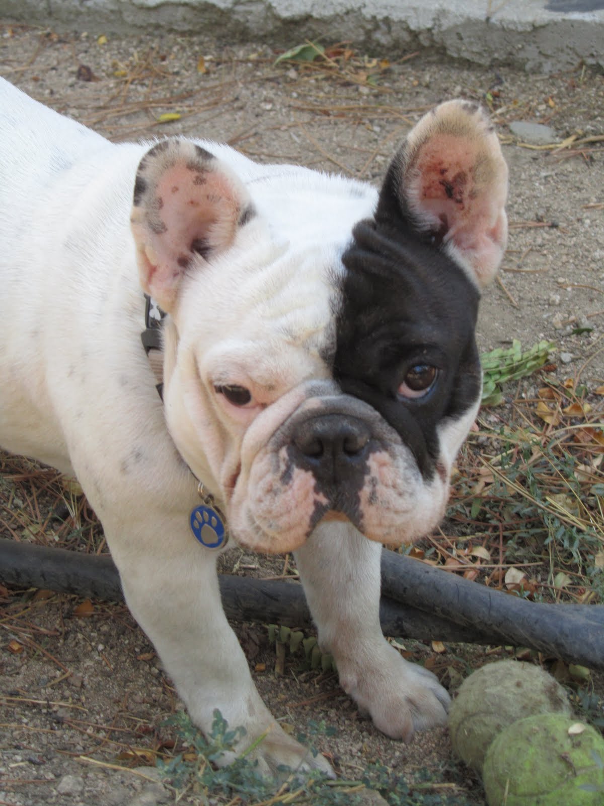 RITA, residente en Los Arroyos de El Escorial, hermanita de Kira y Eko, hijita de Lorena (como siga esto parece El Señor de los Anillos....jejej), es el terror de las lagartijas del barrio, pasa el día patrullando el jardín para mantenerlas a raya! Y qué bien le sienta su huesito azul!